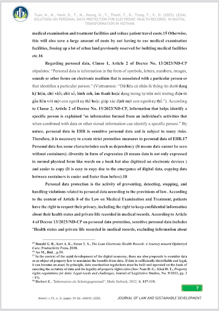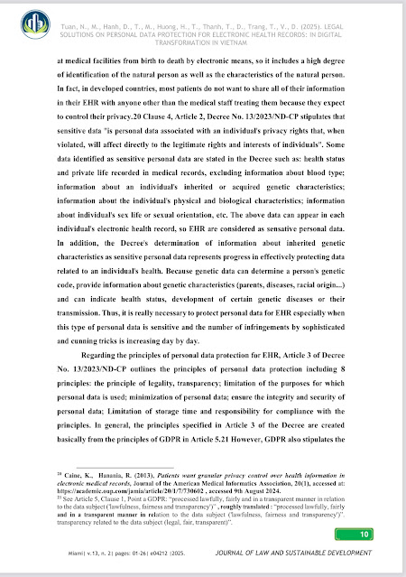 Abstract: Digital transformation is a key driver in modern healthcare systems. In Vietnam, transitioning from paper-based to electronic health records (EHR) offers improved efficiency and quality in healthcare services. However, safeguarding personal data within EHRs is paramount due to the sensitivity of the information involved. This paper explores the existing legal framework on personal data protection for EHRs in Vietnam, identifies critical gaps, and provides actionable recommendations for enhancing legal mechanisms. The study underscores the necessity of a comprehensive law on personal data protection and the development of uniform standards and enforcement mechanisms.